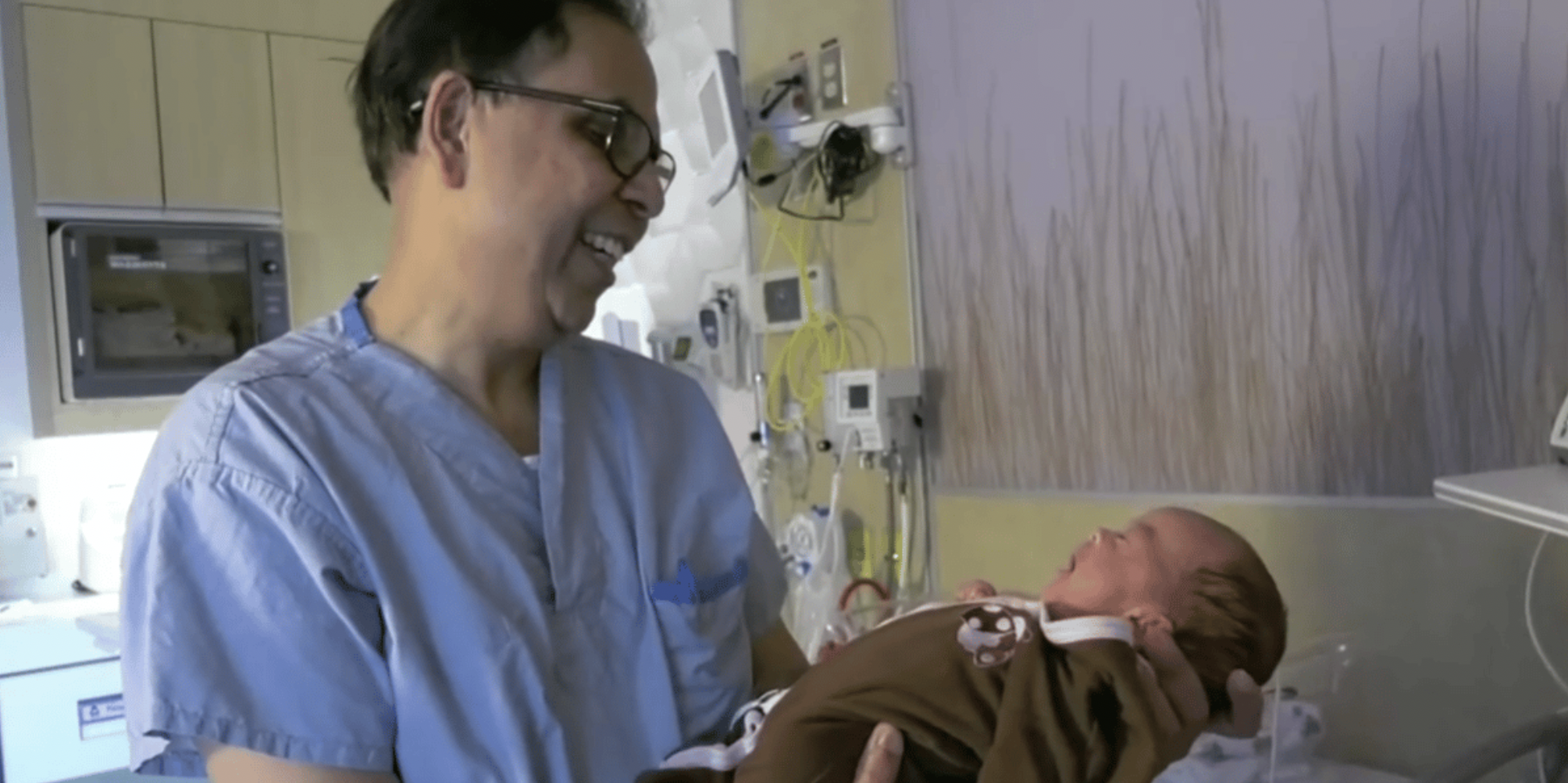 A doctor cradles a newborn at a Covenant Health hospital in Alberta. A March 7 panel of Catholic health-care professionals will help young people interested in medical careers to navigate a health-care culture that can challenge religious conviction. (Covenant Health Alberta screen image)