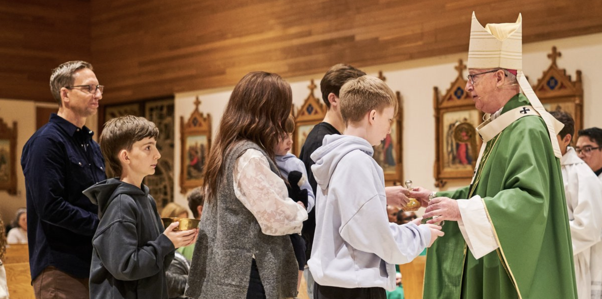 The Green Mass, celebrated by Archbishop Smith, was offered for the work of mental health professionals and ministry volunteers in the Archdiocese of Vancouver, as well as to celebrate the launch of the Archdiocese’s Mental Health Ministry, coordinated by Jane Waldock, who welcomed those attending.