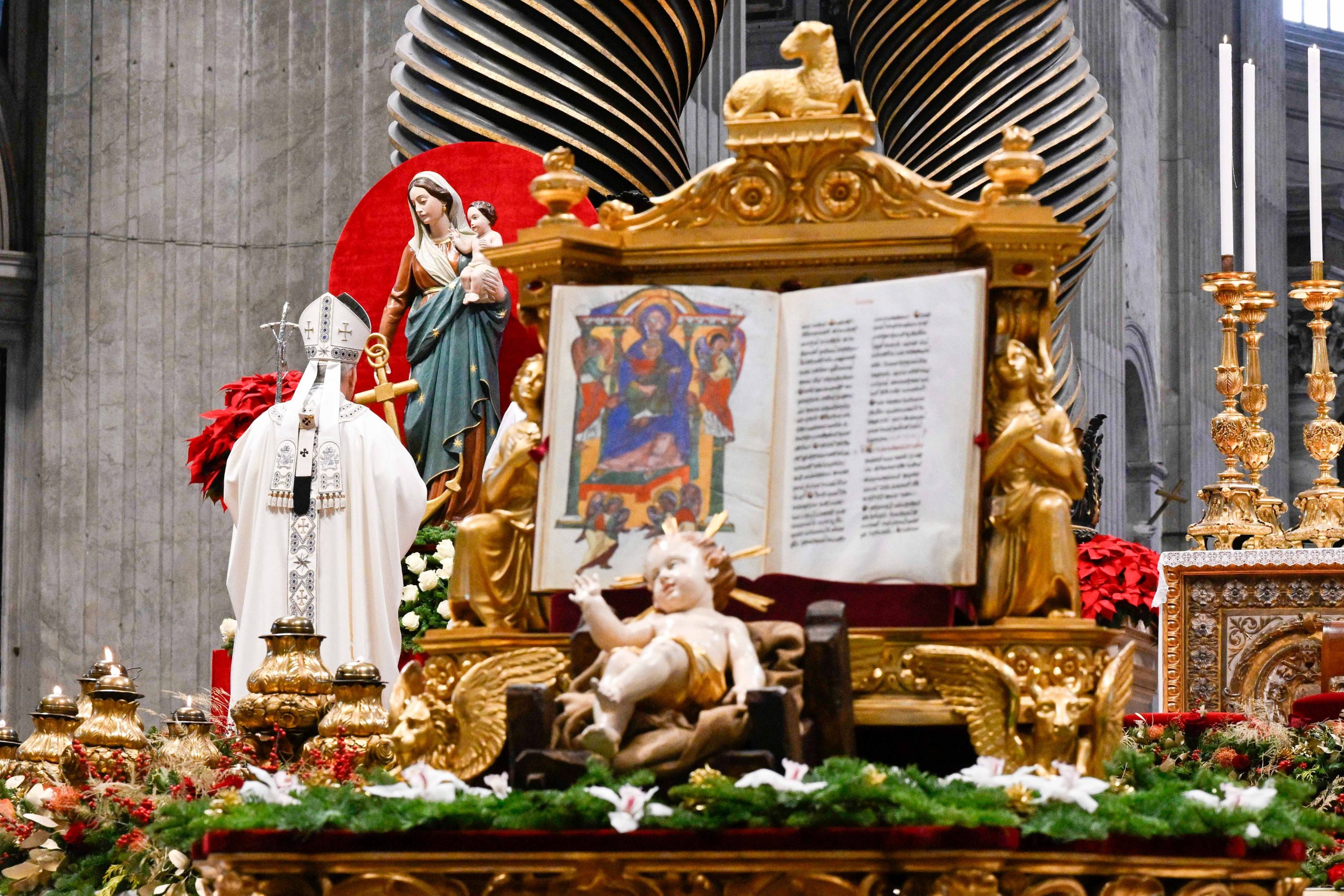 Thousands of people were present in the basilica for the celebration on New Year’s Day, including young people dressed as the three kings who visited Jesus. A figurine of the infant Jesus was before the altar, in keeping with the Christmas season of celebration, and an image of Our Lady of Hope was to the side of the main altar as a sign of the Jubilee of hope, which will end Jan. 6.