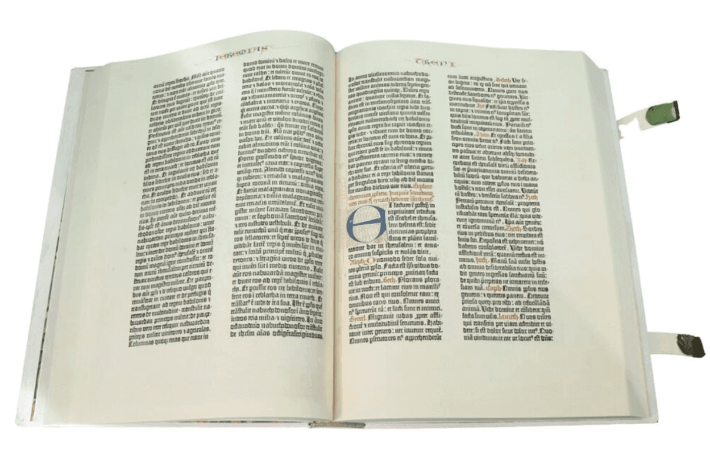 This edition of the Latin Vulgate (a late-fourth-century Latin translation of the Bible) is named after Johannes Gutenberg, the German inventor who devised the printing press around the year 1440. His invention spawned the Printing Revolution.
