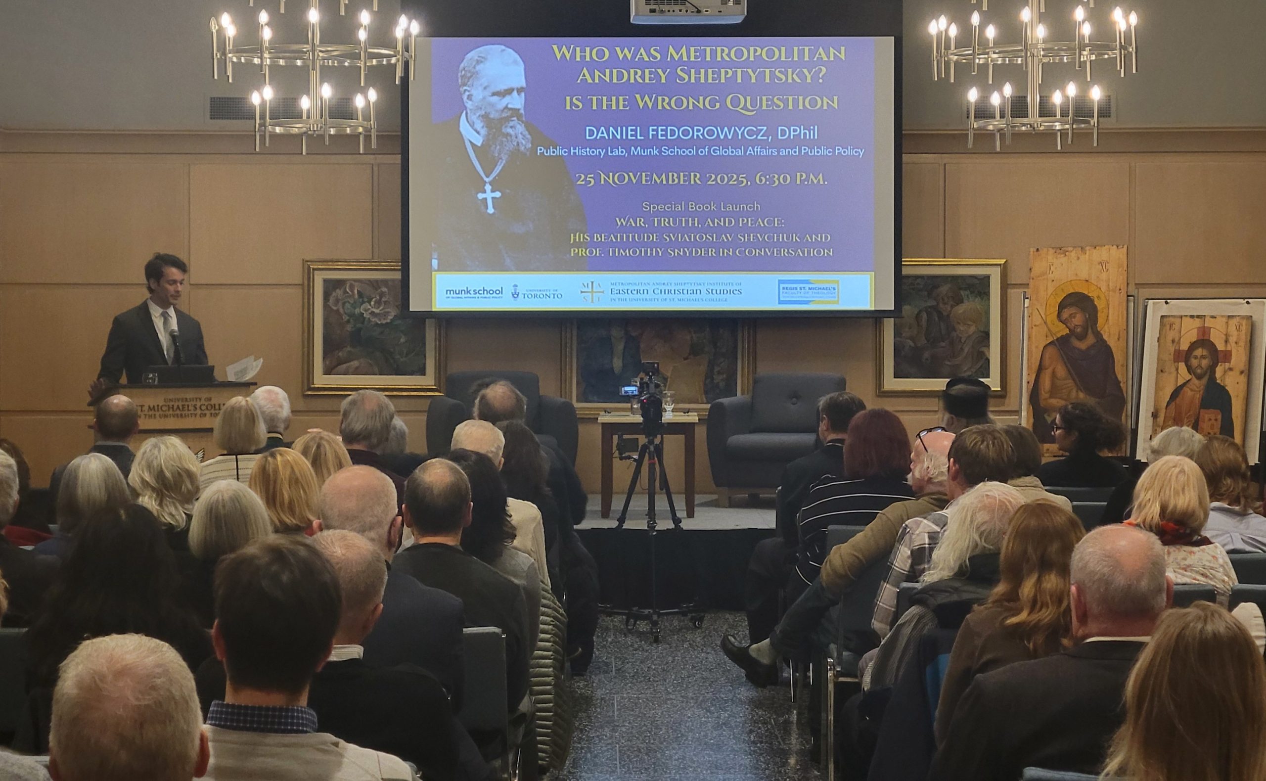 He spoke about the archbishop’s writings and what they reveal about the church leader during a public lecture on the theme, “Who is Metropolitan Andrey Sheptytsky? Is the Wrong Question.” The event was held at the Metropolitan Andrey Sheptytsky Institute for Eastern Christian Studies at the University of St. Michael’s College Nov. 25.