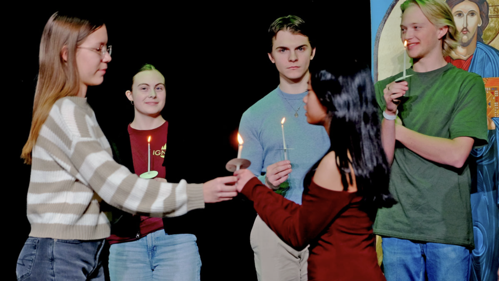 Youth in grades 10-12 who participated in the weekend retreat were sent forth in a ceremony in which they received a lit candle as a symbol of the Light of Christ, and were presented with a cross by a representative of all those who prayed, mentored, and served them through the many hours of the weekend retreat.