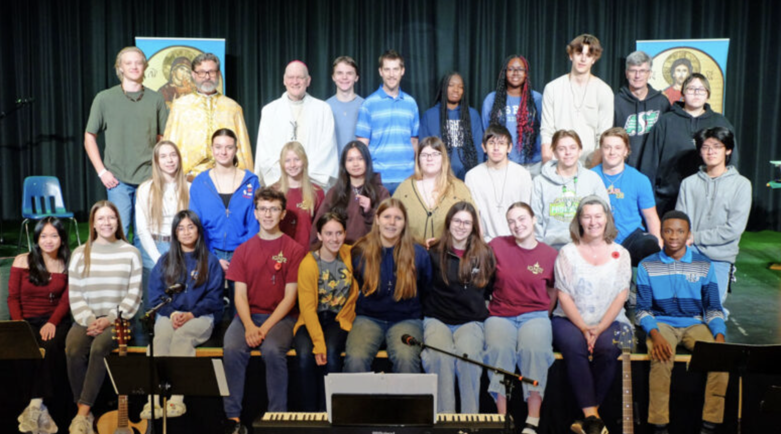 Youth in Grades 10-12 gathered Nov. 7-8 for a Search retreat focused on the love of God and deepening a relationship with Jesus Christ. Bishop Mark Hagemoen and Rev. Gregory Hrynkiw celebrated the closing Mass with participants, family members, leaders, presenters, and volunteers to conclude the Search weekend. (Photo by Kiply Lukan Yaworski, Catholic Saskatoon News)